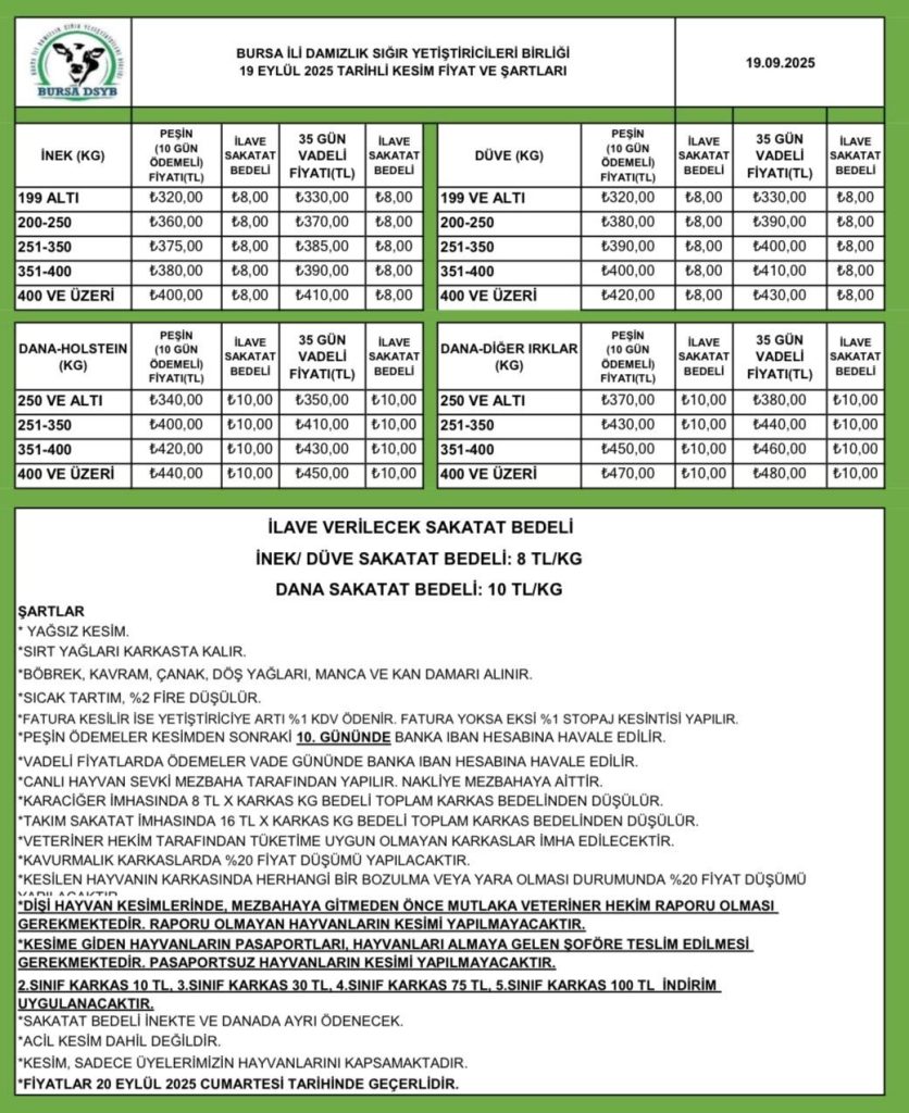 19 EYLÜL 2025 KESİM FİYATLARI