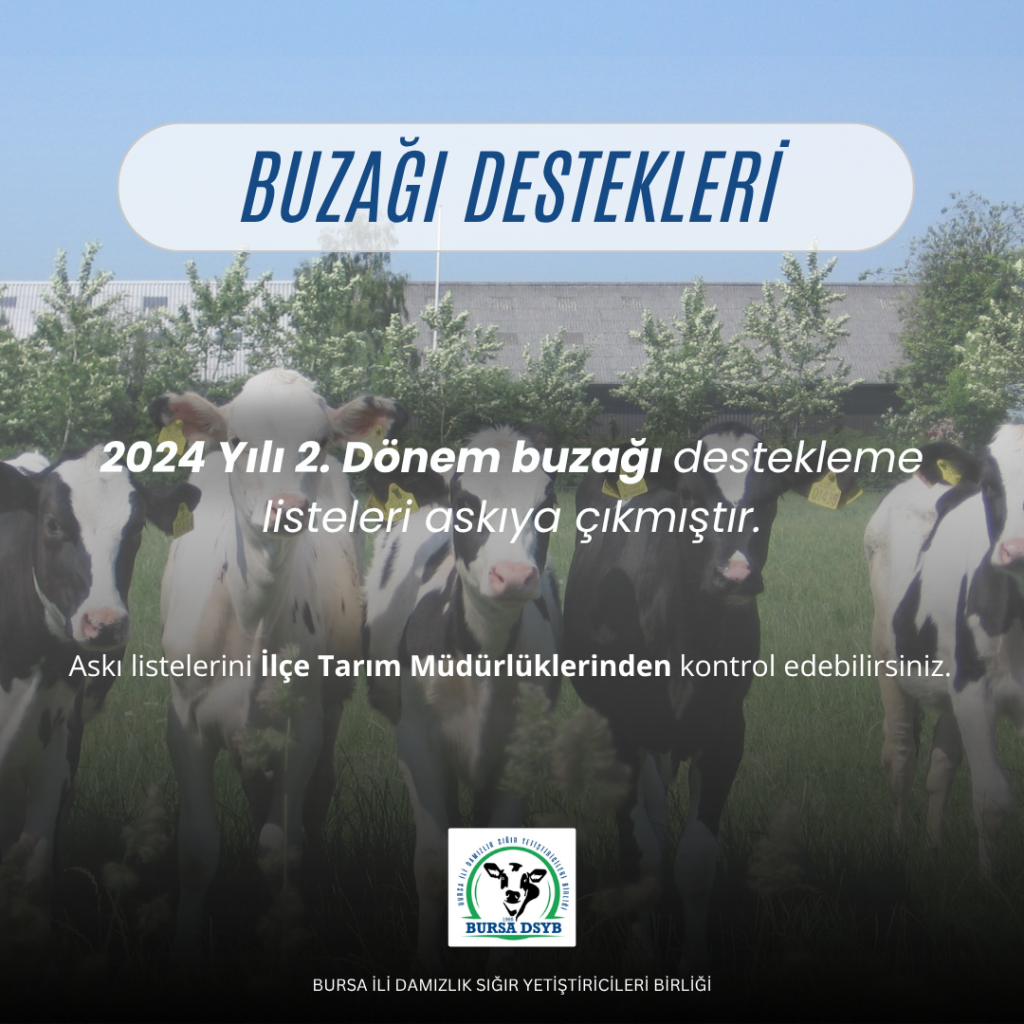 2024 yılı 2. dönem buzağı destekleme listeleri askıya çıkmıştır. Askı listelerini İlçe Tarım Müdürlüklerinden kontrol edebilirsiniz.