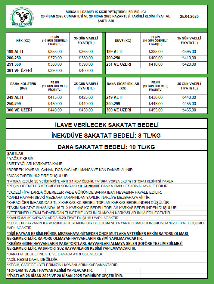 BURSA İLİ DAMIZLIK SIĞIR YETİŞTİRİCİLERİ BİRLİĞİ