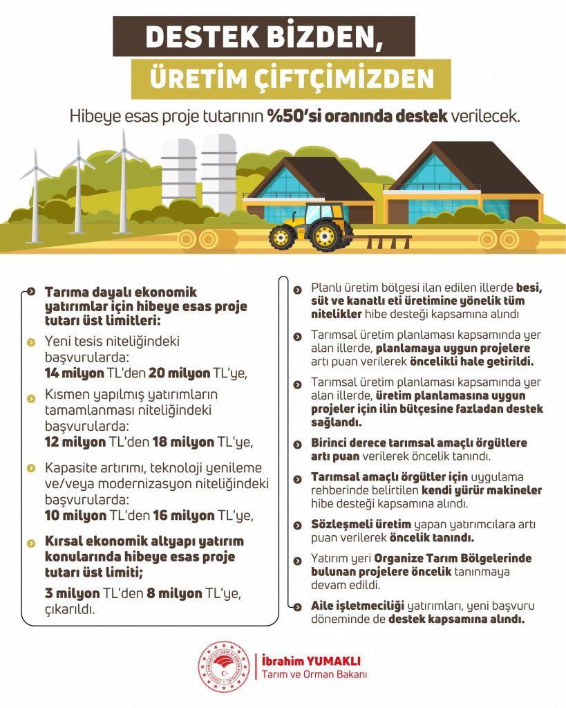 Kırsal Kalkınma Destekleri Kapsamında Tarıma Dayalı Yatırımların Desteklenmesi Tebliğ'i, Resmî Gazete'de yayımlanarak yürürlüğe girmiştir.
